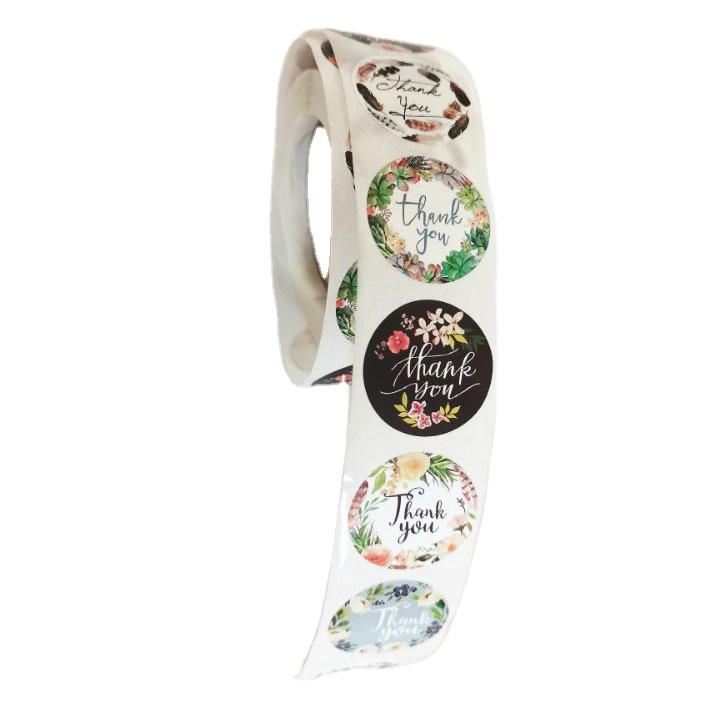 Removable Label Roll Custom Design Paper Sticker Thank You Label Self-Adhesive Roll Sticker Printing